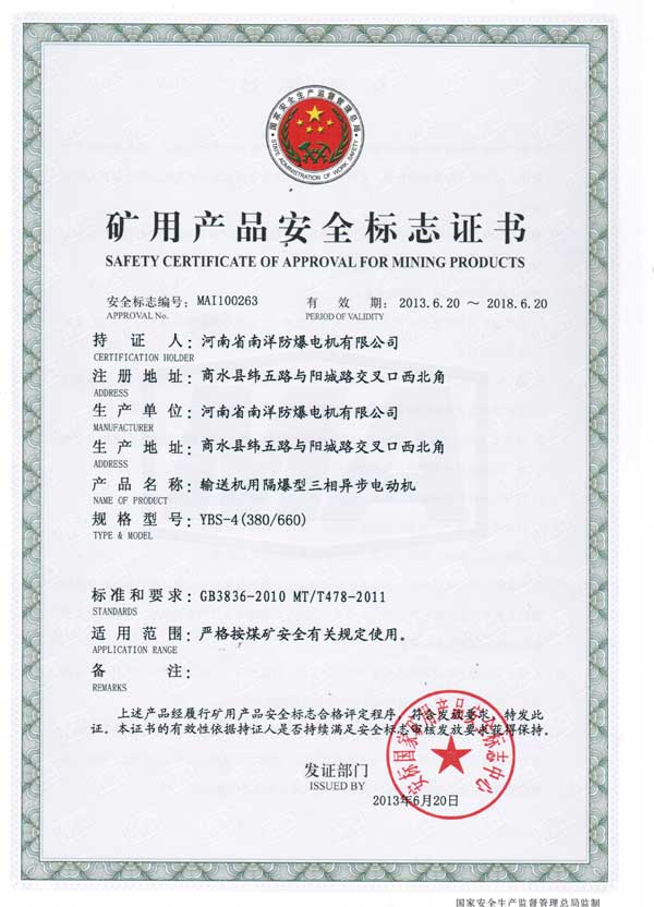 輸送機防爆電機主要用于煤礦井下的皮帶輸送機,刮板輸送機等配套用電機,機座由鋼板焊接成形,風罩,接線盒,絕緣結構采取加強措施,防止碎石墜落砸傷電機,已適應煤礦井下的復雜環境。防爆性能符合GB3836.1《爆炸性環境用防爆電氣設備 通用要求》和GB3836.2《爆炸性環境用防爆電氣設備隔爆性電氣設備d》的規定,適用于煤礦井下具有可燃性氣體或煤塵與空氣形成爆炸性氣體環境的場所,防爆標志為ExdI Mb。