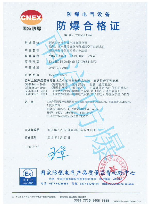 5. 防爆型式:Ex d IIC T4 Gb/Ex td B21 T135°C既適用于工廠具有可燃性氣體場(chǎng)所,又滿足可燃性粉塵場(chǎng)所和可燃性飛絮的場(chǎng)所(如飼料.紡織.面粉.水泥等可產(chǎn)生粉塵的場(chǎng)所)。